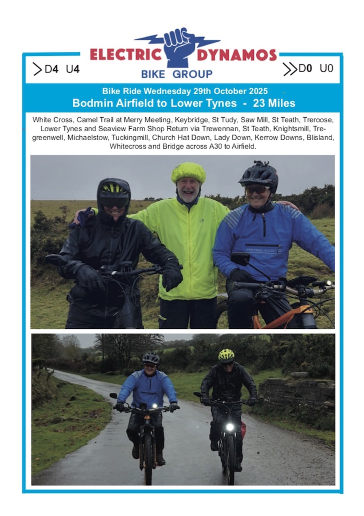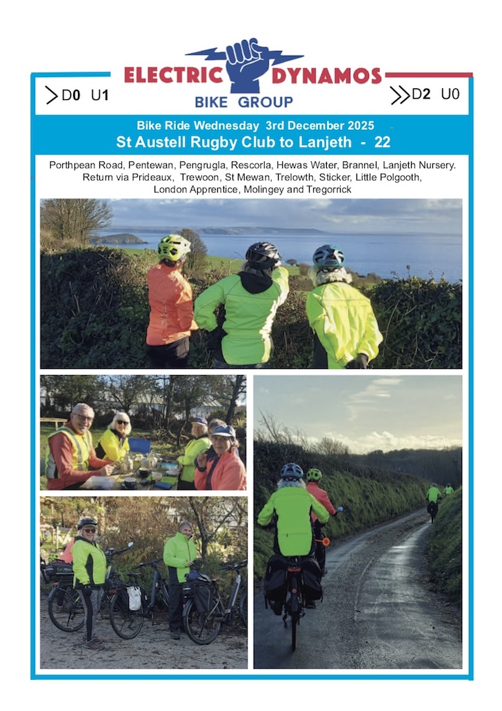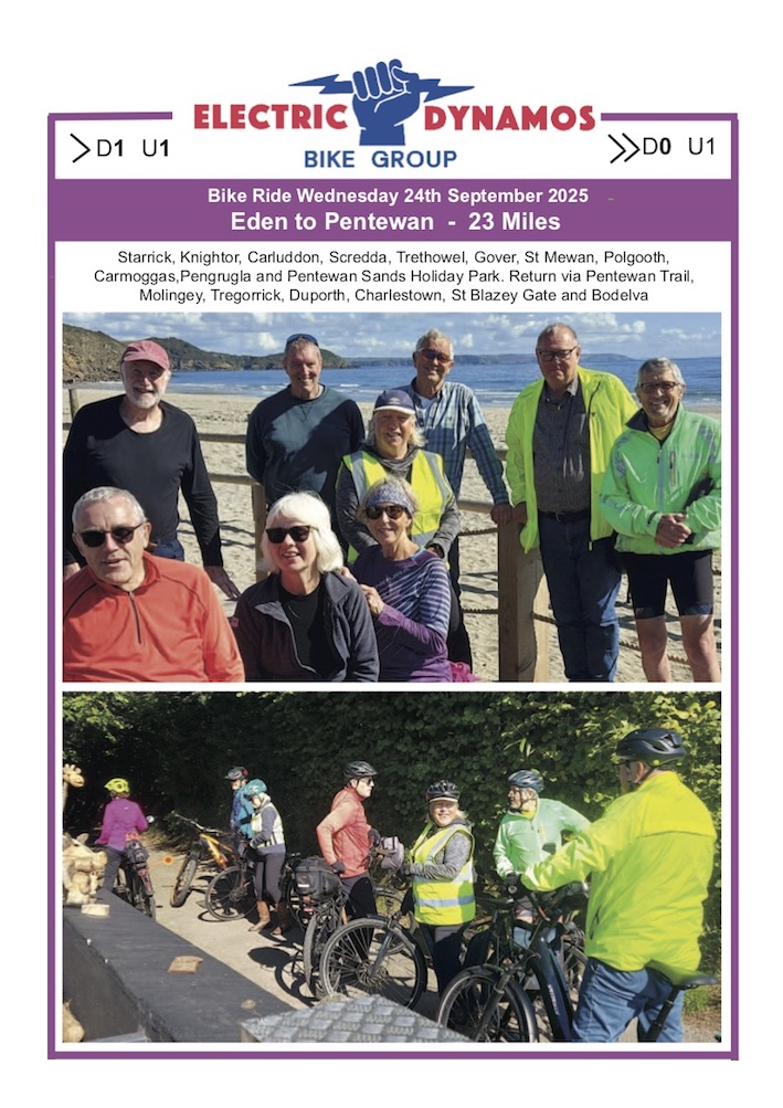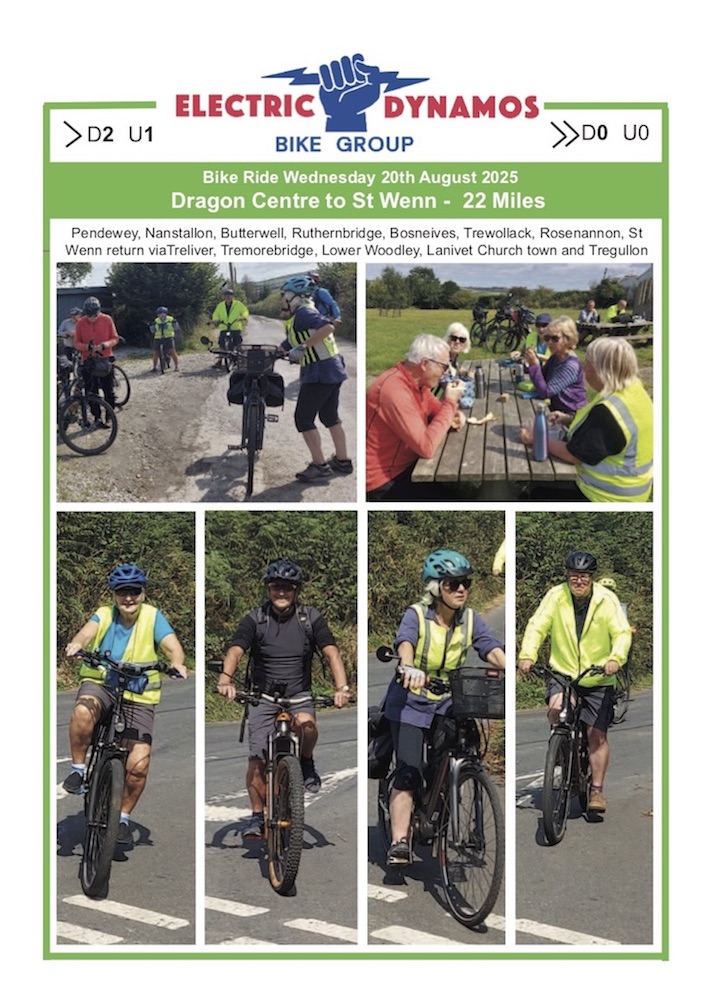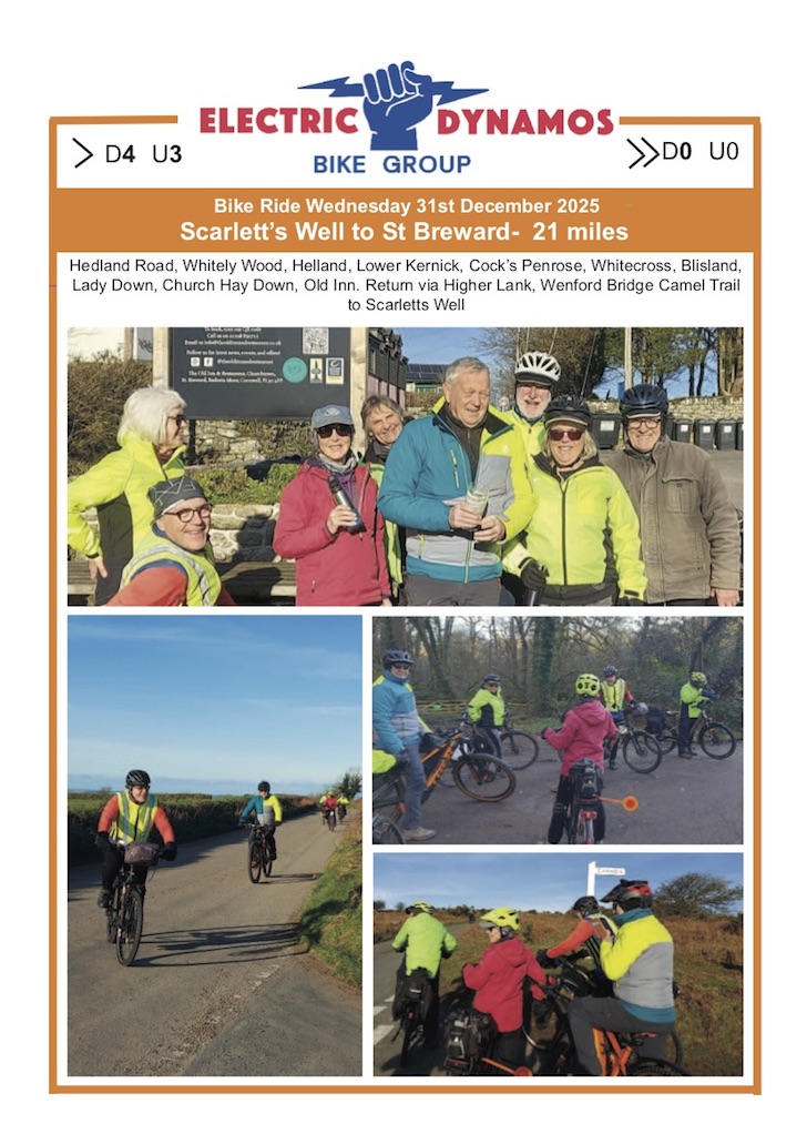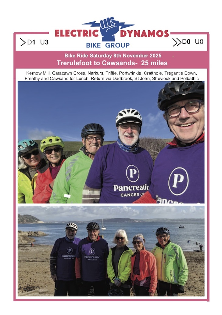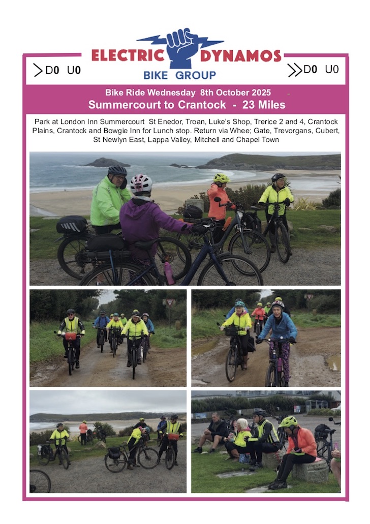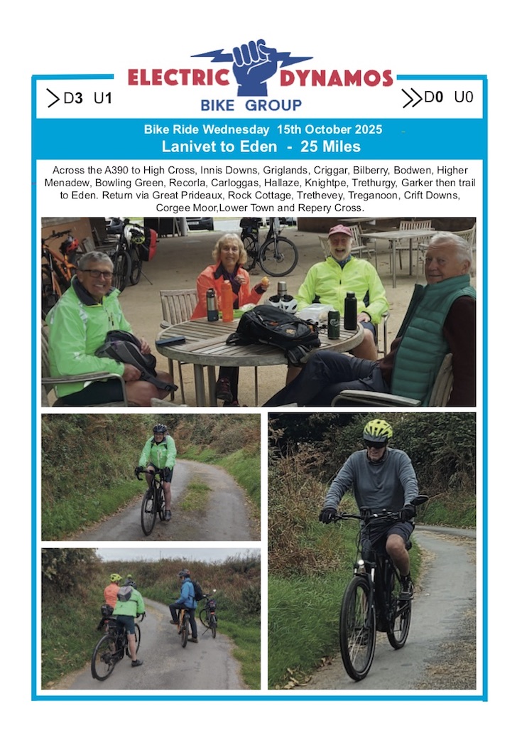 All of our riders now have Electric Bikes which means that we can cycle further and don't have to bother about hills. At the moment we are trying to do a ride every week usually on Wednesday's. For further information please read the notice on our Group Home Page.