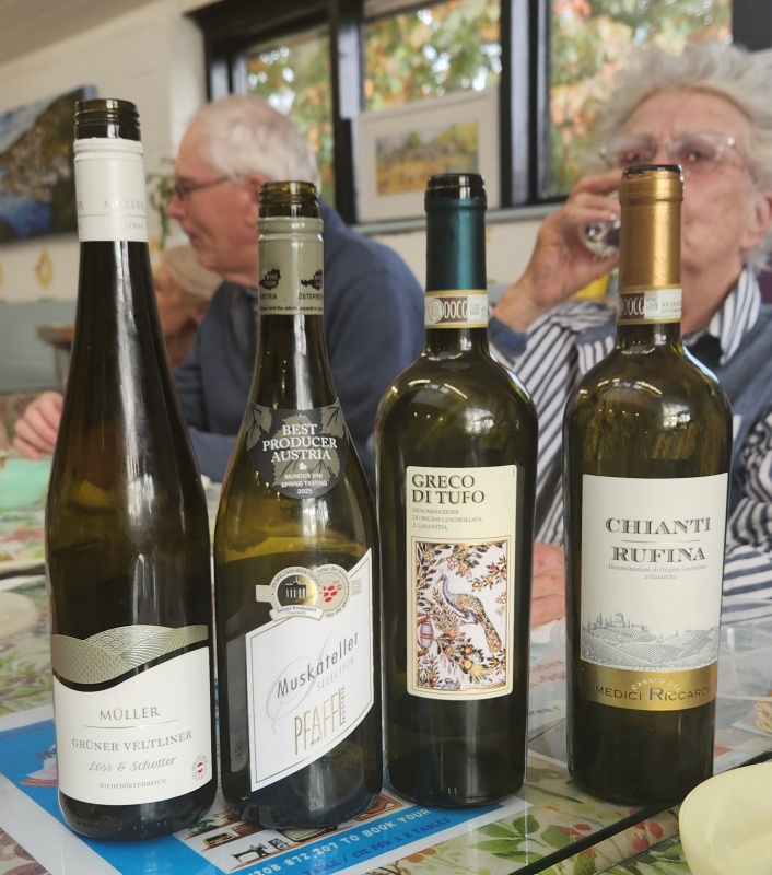 The September meeting was again in the Social Club hosted by Jenny. She chose two Austrian and two Italian wines to share. She bought all from Lidl at a reasonable price.