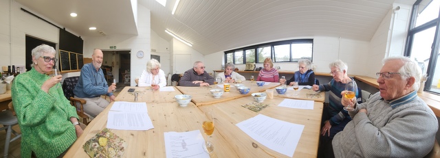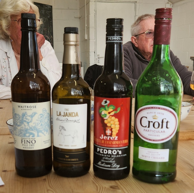 At the Community Centre with our host this month Alison and John Hurst. The theme was Sherry!