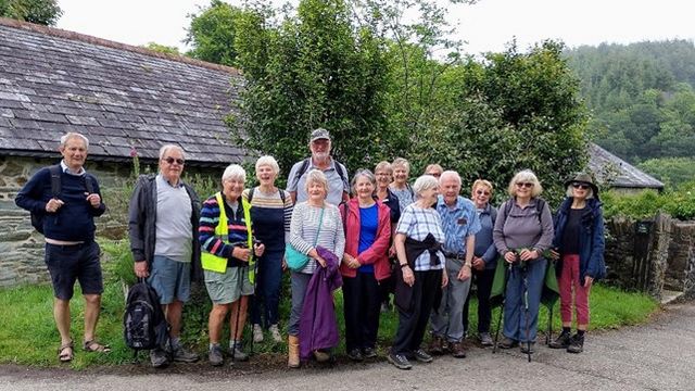 Seven members of the walking group, not put off by the prospect of challenging uphills, gathered in good time at the bus stop opposite the fire station in West Looe to catch the number 10 bus to Hessenford. The sun was shining and there was not a single cloud in the sky.