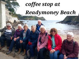 For once the weather was kind and some stopped for coffee in town whilst others took in the spectacular sea views at Readymoney Beach.